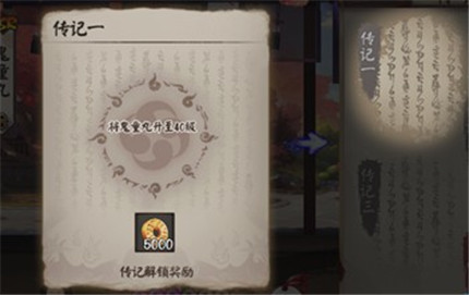 解锁鬼童丸的传记一需要将其升到40级,而传记二则需要升级他的技能,而传记三需要鬼童丸参与斗技或练习获胜30场。